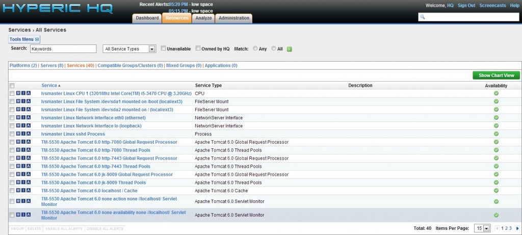 hyperic hq 是一个开源的it管理框架,让用户使用统一的界面来管理各种不同的it技术。