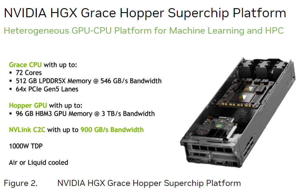 在nvlink c2c的帮助下,应用程序可访问的内存不止gpu所提供的96gb,可用的还有来自grace cpu的内存,每一个grace hopper superchip可提供{banned}最佳多512gb的lpddr5x的cpu内存。加起来就是512 96=608gb!