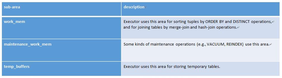 shared memory area –由postgresql服务器的所有进程使用