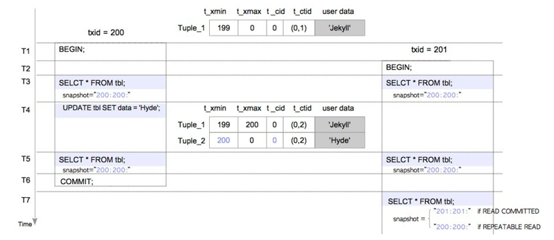t_xmin保存插入此元组的事务的txid,它的状态是行可见性判断关键的依据。