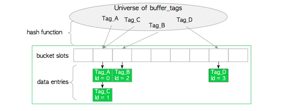 在这一层内置的hash函数将buffer_tags映射到插槽,插槽中记录了buffer_tags和描述层的buffer_id的映射关系。