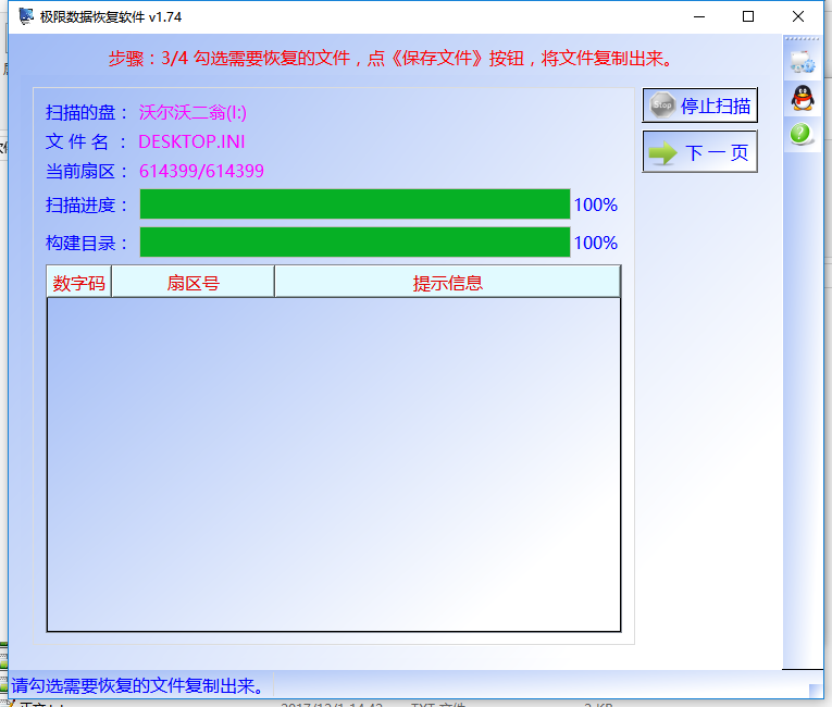 步骤2:软件会很快将找到的数据,放到与要恢复盘卷标名相同的目录中